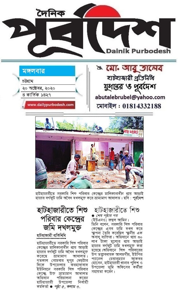 অবৈধ ভাবে দখল করে স্থাপনা নিমার্ণ করে ভোগ-দখলে থাকা অবৈধ দখলদারদের উচ্ছেদ।