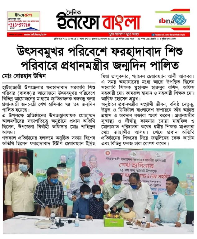 "উৎসবমুখর পরিবেশে ফরহাদাবাদ শিশু পরিবারে প্রধানমন্ত্রীর জন্মদিন পালিত”